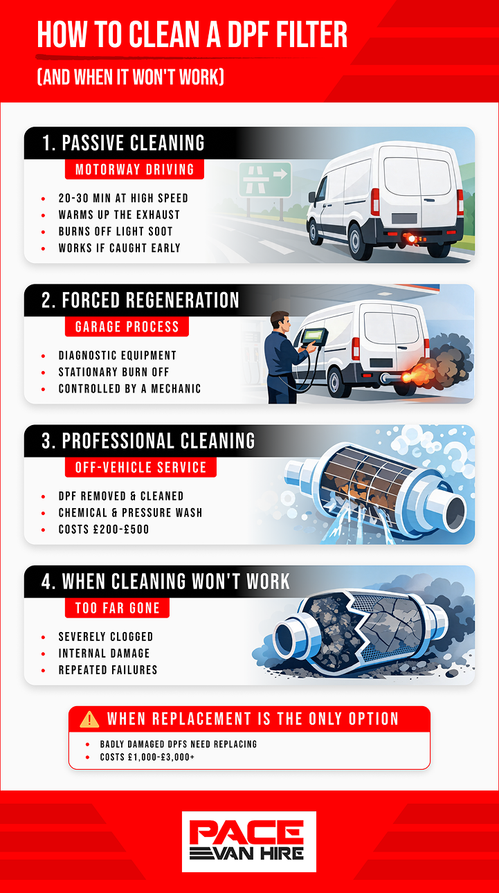 In the early stages of a blockage, the simplest way to clean a DPF filter is just by driving the van properly.